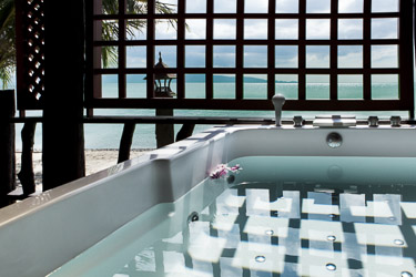 Located beach front and sea view. A gridded screen protects your privacy in Jacuzzi but still allows you to enjoy the stunning views.