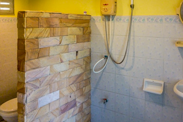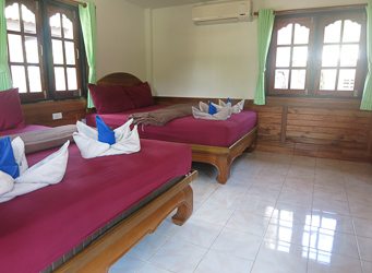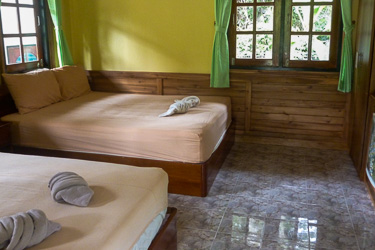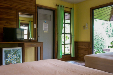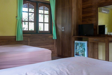 These modern wood/concrete mix bungalows are perfect for families. They include aircon, fridge, tv, wardrobe and bathroom with hot water shower.