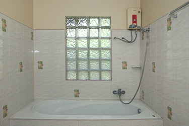 These bright family villas include aircon, fridge, tv, wardrobe and bathroom with hot water shower.