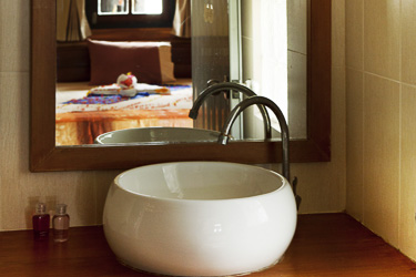 These raised villas include aircon, fridge, tv, wardrobe and bathroom with hot water shower and bathtub.